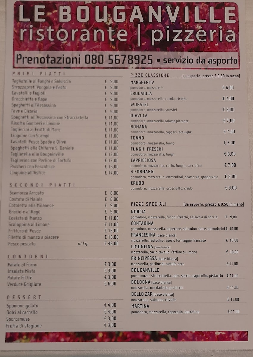 Welcome to Le Bougainville, an enchanting culinary gem nestled in Bari, Italy, where the flavors of fresh, local ingredients take center stage. Renowned for its exceptional seafood offerings, the menu features delectable dishes like risotto with lemon and shrimp, and pizza Pluto—each a testament to the skill of Chef Luciano, a familiar face from renowned restaurants and Rai1.